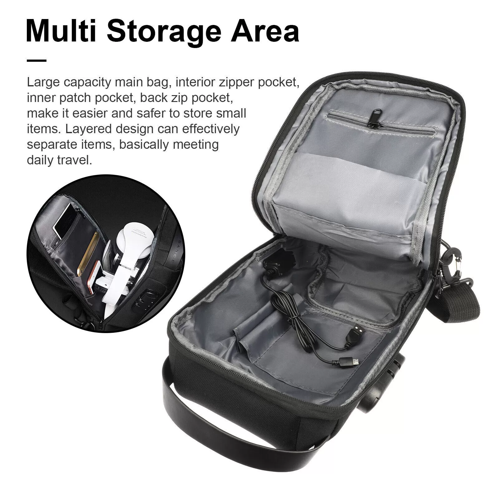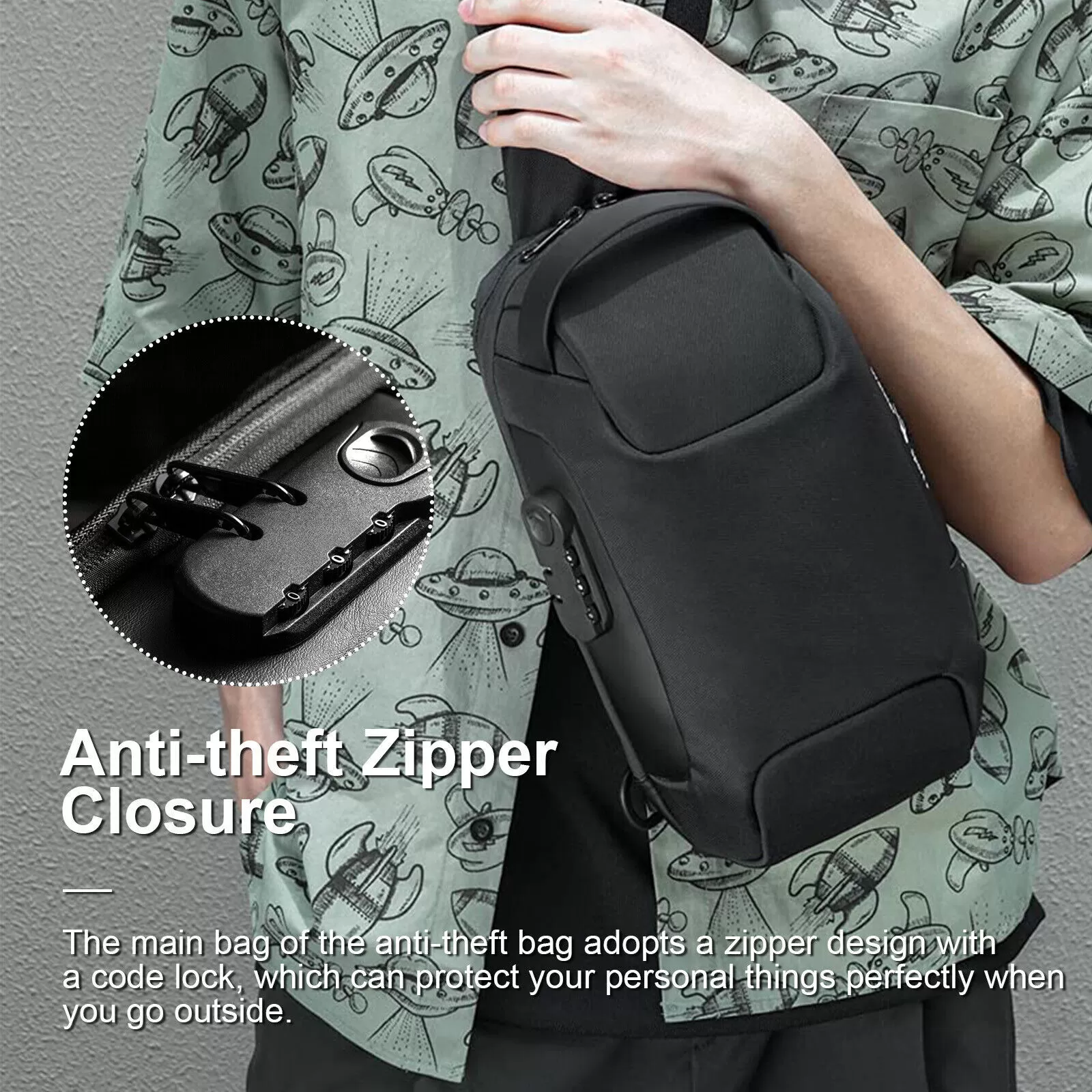 4. Anti-theft Zipper Closure: The main bag of the anti-theft bag adopts a zipper design with a code lock, which can protect your personal things perfectly when you go outside.